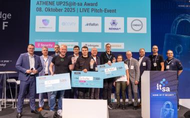 Beim Live-Pitch um den Athene Startup Award UP25@it-sa setzte sich Infrafon aus Freiburg auf der it-sa Expo&Congress durch und sicherte sich den 1. Platz und damit ein Preisgeld von 7.500 Euro.