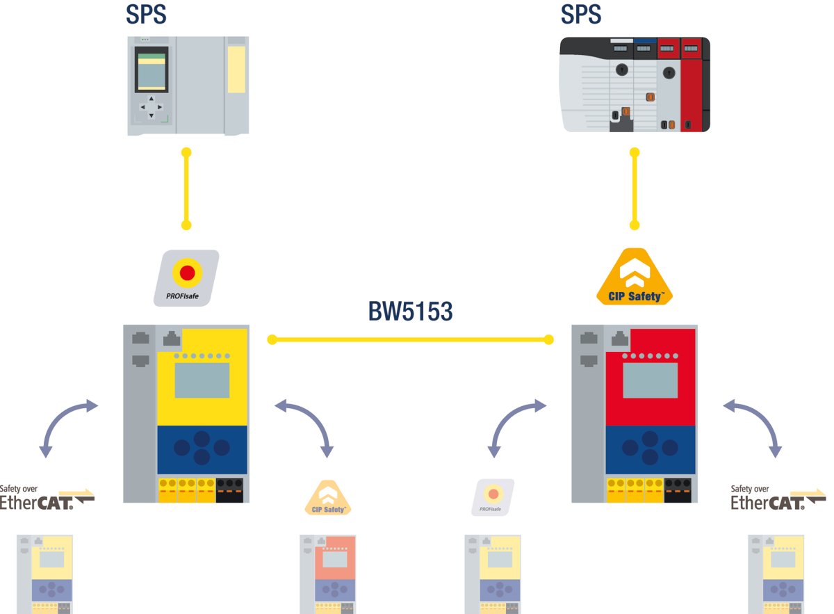 Zwei unterschiedliche sichere Steuerungen miteinander zu verbinden und damit alle Signale des einen Netzwerks jeweils auch im anderen zu nutzen, war noch nie so leicht wie mit modernen ASi-5 Feldbus Gateways und den Software-Suites von Bihl+Wiedemann.