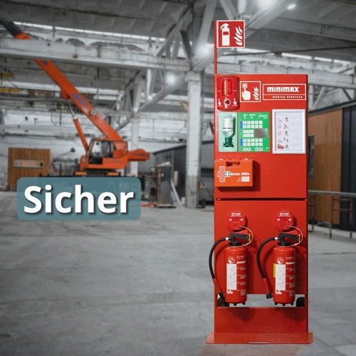 Die Safety Station 360° vereint wichtige Komponenten für den vorbeugenden und abwehrenden Brandschutz sowie für Erste Hilfe in einer kompakten Einheit. Sie ist in Kürze auf- und abgebaut und eignet sich ideal für Baustellen, Industrieanlagen, Veranstaltungen und temporäre Einrichtungen – überall dort, wo eine feste Brandschutzinfrastruktur fehlt oder nicht praktikabel ist.