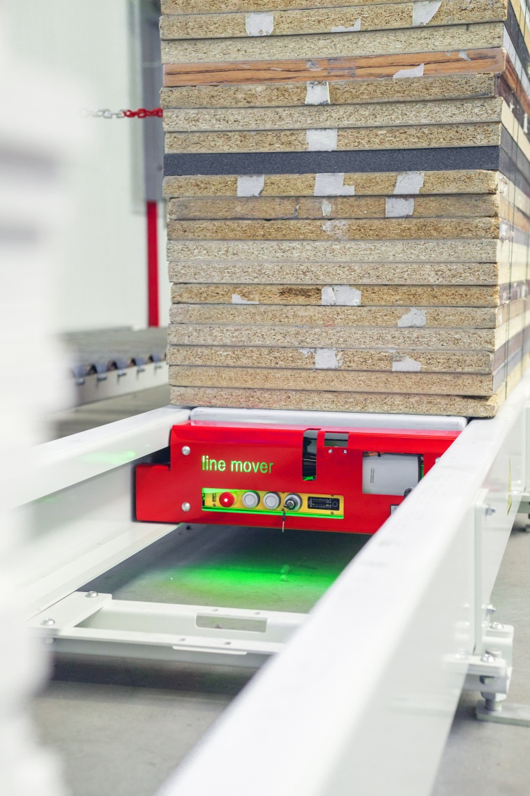 Als Spezialist für individuelle Anlagen- und Fördertechnik bietet das Unternehmen Horstkemper seinen Kunden ein neuartiges Shuttle-Konzept zum Warentransport. Der „Line Mover“ mit einer Hubkraft von 800 bis 1000 kg braucht dafür keine Rollbahn mehr, sondern gleitet auf einer Achse zwischen den Stationen hin und her. Eine Batterie treibt durch 2 Gleichstrommotoren die Antriebsrollen an. Der Line Mover zeichnet sich dabei vor allem durch die kompakte Bauweise und die einfache Bedienung und Diagnose aus. Über einen QR-Code an der Anlage kommt man nach Passworteingabe direkt zur Bedienung per Tablet oder Handy.